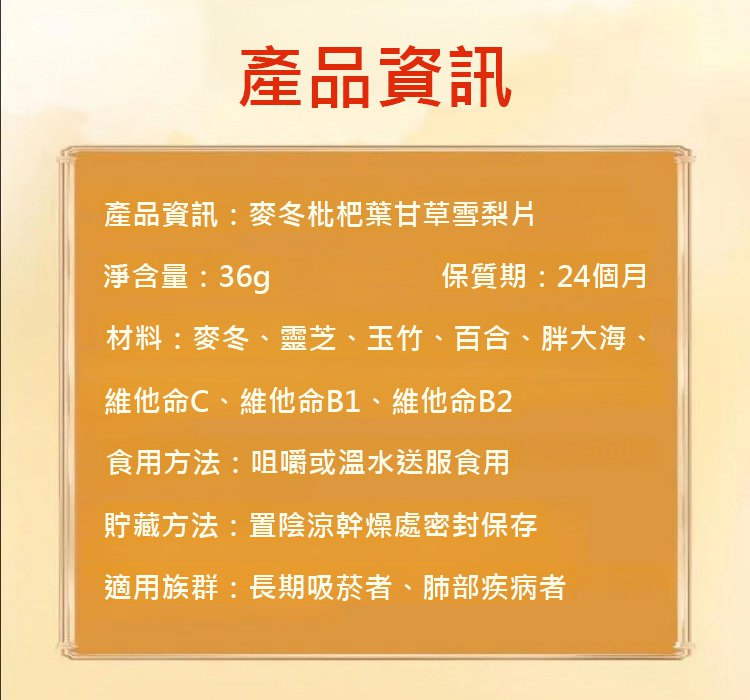 麥冬枇杷葉甘草雪梨片